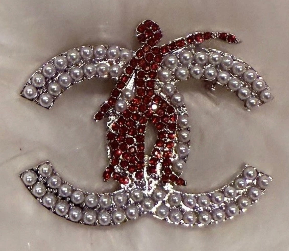 This Beautiful CC Pearls Brooch is Oh, So “Classic Couture!” Looks Great with Your Favorite Camouflage Jacket or Jean Jacket! *COLOR OF FREE KEEPSAKE POUCH: BURGUNDY